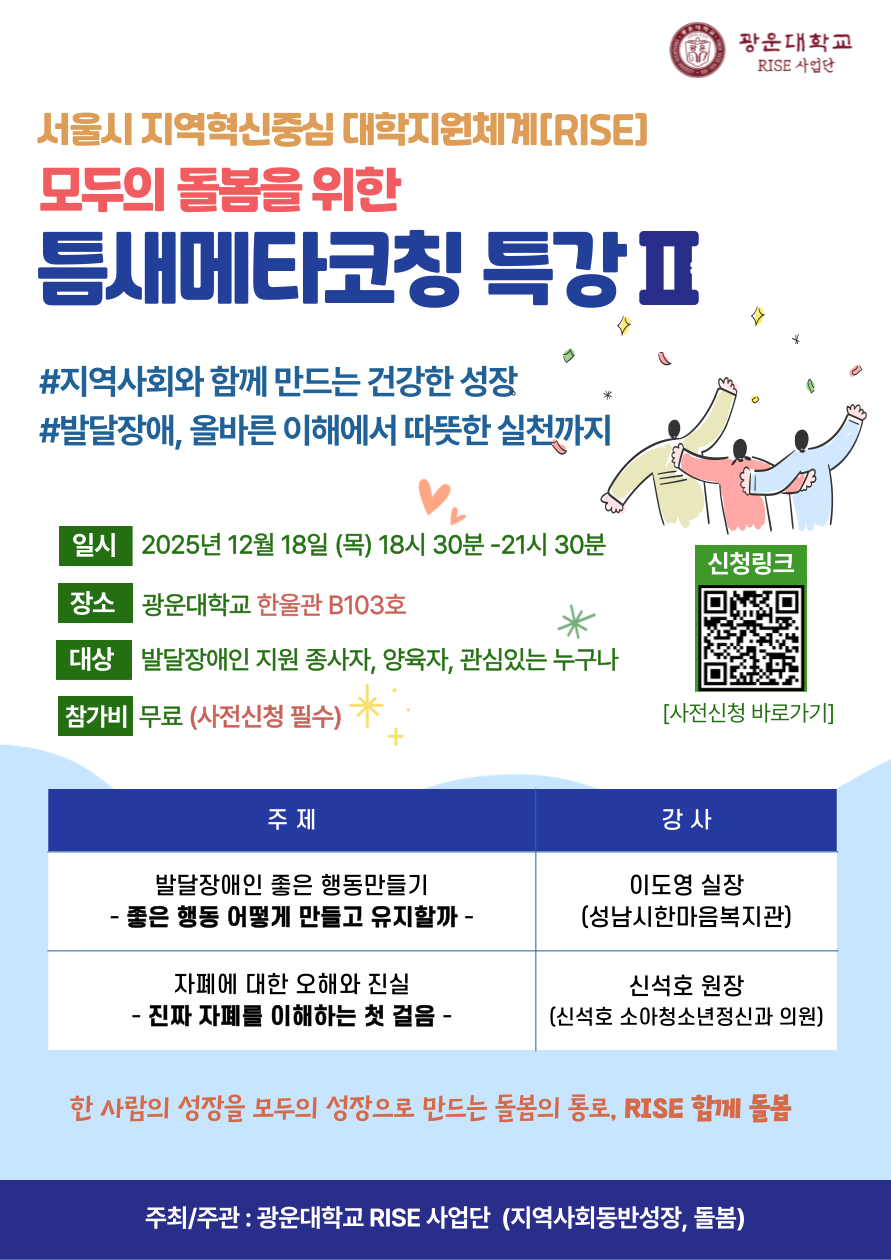 [±¤¿î´ëÇб³ RISE(µ¹º½)] 12¿ù 18ÀÏ ¸ñ¿äÀÏ "Æ´»õ¸ÞŸÄÚĪ" Ư°II ÁøÇà