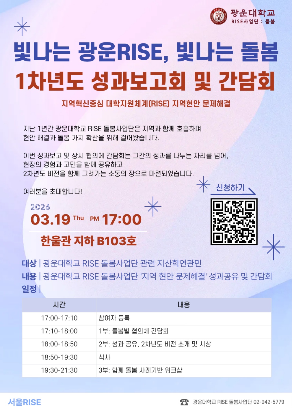 ±¤¿î´ëÇб³ RISE µ¹º½ »ç¾÷´Ü ¼º°úº¸°íȸ ¹× °£´ãȸ ¾È³» |